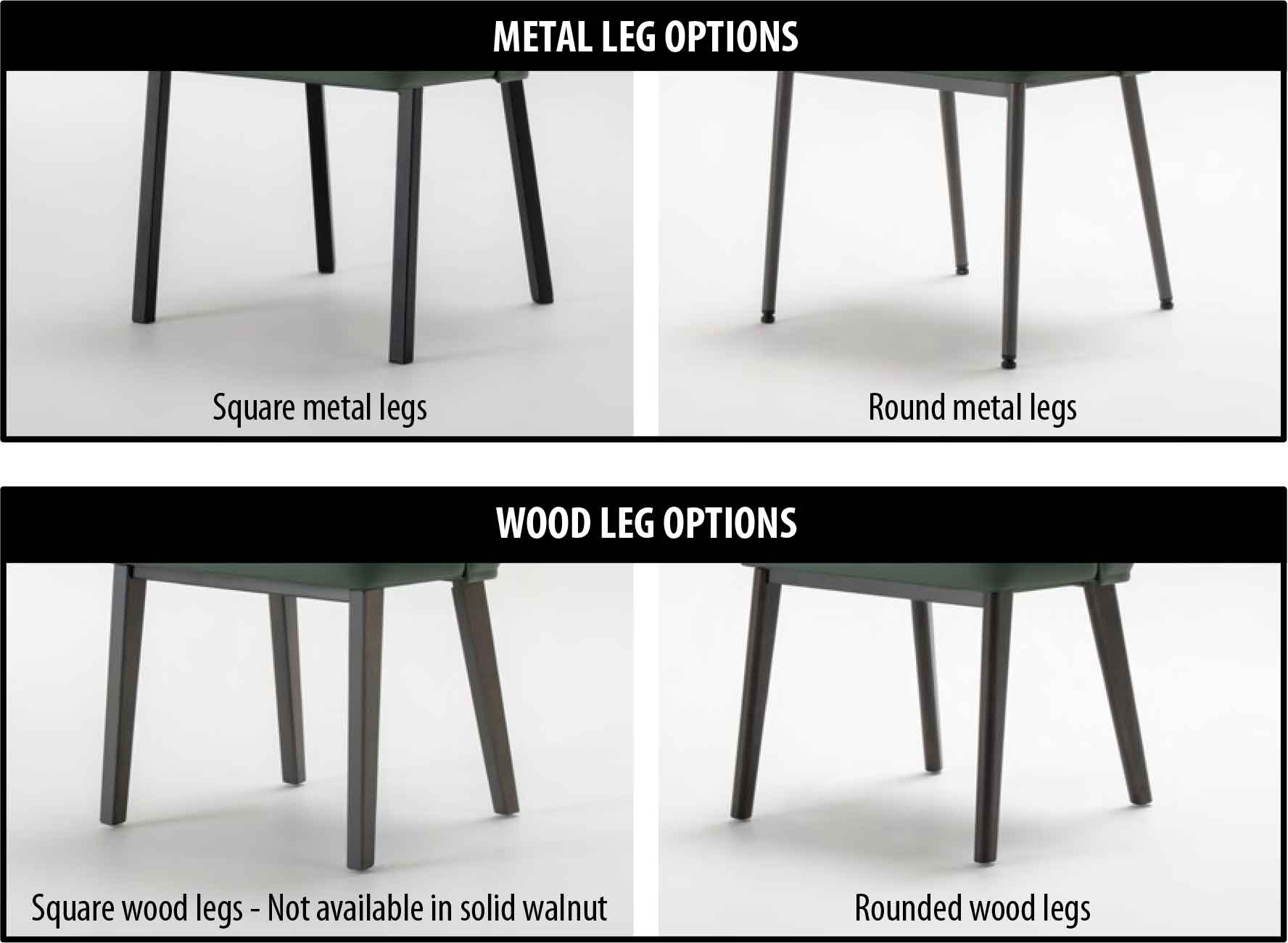 Available with metal, solid birch, solid oak or solid walnut legs.