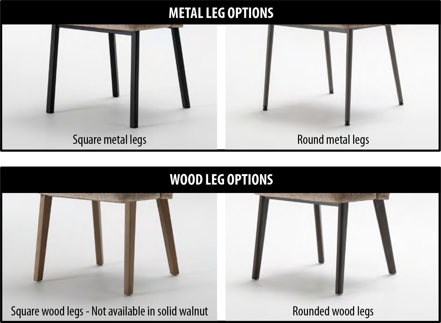 Available with metal, solid birch, solid oak or solid walnut legs.