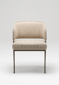 The Madison chair features a contemporary style with clean lines and a minimalist structure. This wrap-around chair has short armrests integrated into the extension of the backrest. The slim and straight legs give it an appearance that is both sturdy and delicate without compromising comfort.