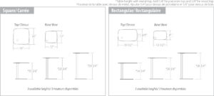 2 grandeurs de dessus disponibles: Carré: 16” x 16” et Rectangulaire: 19 1/2” x 11 3/4”.
