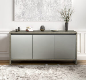 Buffet conçu avec une structure en bois massif, assurant robustesse et durabilité. Les portes sont disponibles en bois massif pour une continuité naturelle, en verre pour une touche contemporaine ou en porcelaine pour une élégance raffinée.
