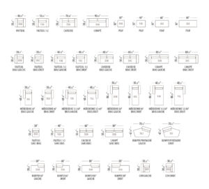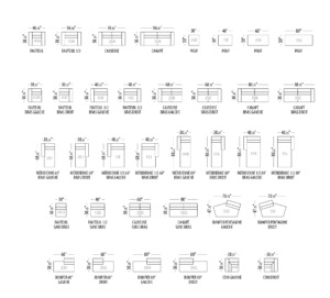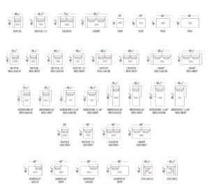 Hauteur de l’assise: 17″ ou 18 1/2″ • Hauteur du dos/ bras: 27″ ou 28 1/2″