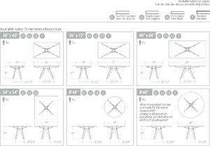 6 grandeurs de dessus et de bases sont disponibles: